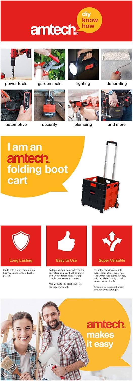 Amtech – Folding Shopping Trolley on Wheels, Easy to Assemble, Collapsible for Easy Transport in Car Boot, Great for Tools, Groceries, and Heavy Loads, Lightweight, Sturdy (25kg Capacity)