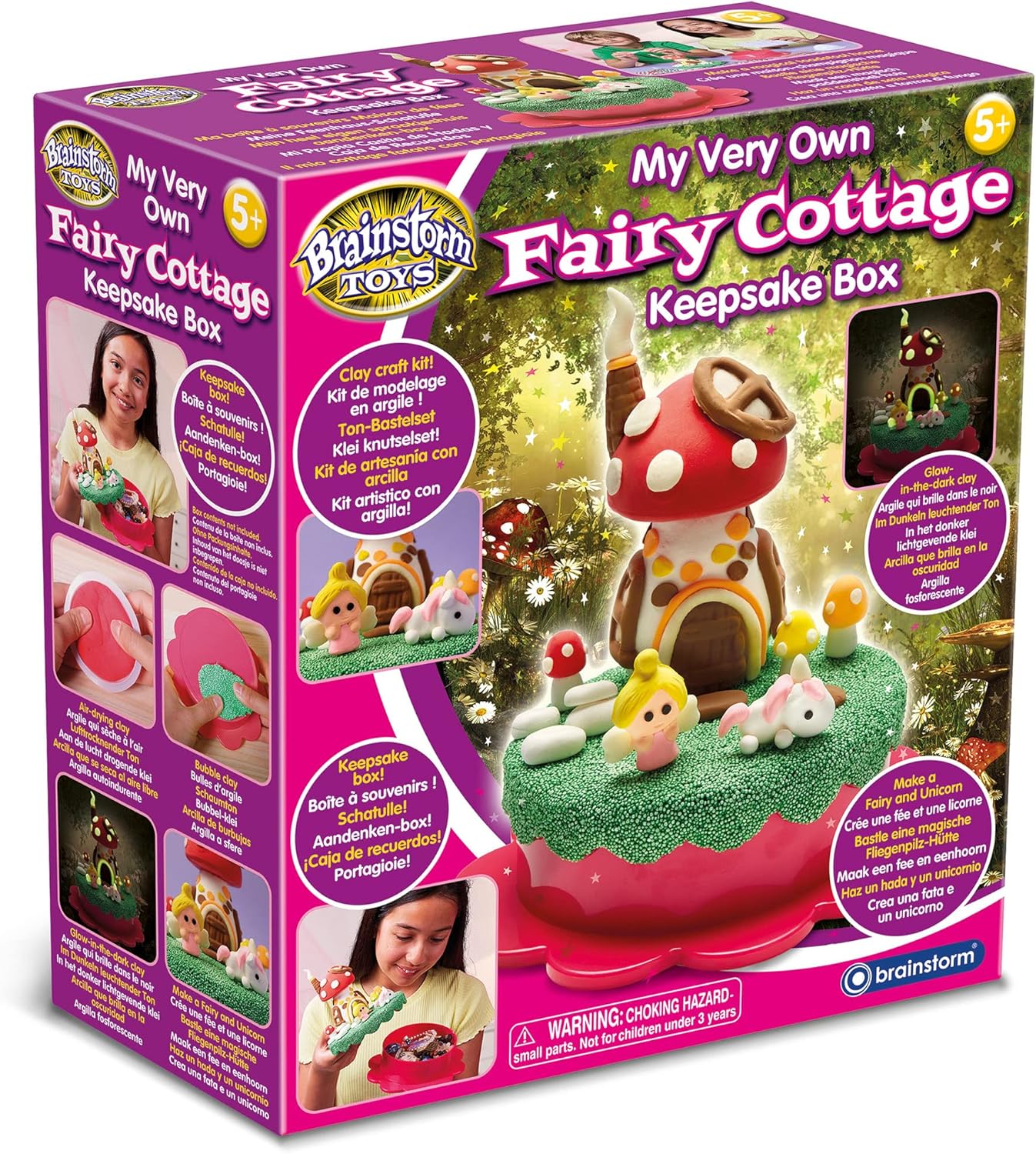 Awaken your imagination with this enchanting activity. Make the toadstool cottage with easy-to-use air-drying and glow clay. Includes moulds to help you make your shapes. Use the bubble clay to create a fairy garden on the lid of your keepsake box. Now mould your beautiful fairy, unicorn and toadstool figures and place them in the garden. Add trinkets to your decorated box and treasure forever. Ideal as a room decoration. Contains everything you need including step-by-step guide. No mess and hours of fun! Brainstorm Toys is a range of fun, educational and interactive STEM toys that brings together a host of fascinating items. STEM toys incorporate science, technology, art, engineering and maths and encourage children to explore and develop a passion for these subjects. The aim of Brainstorm Toys branded products is to entertain children but also to inspire them to learn more about their environment.