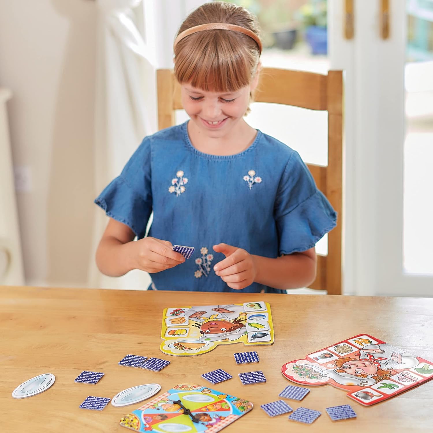 Orchard Toys’ fun, best-selling cooking game “Crazy Chefs” is back with new ingredients and meals. Aspiring chefs will love the chance to help in the kitchen in this fun food-themed, matching game. Help the Crazy Chefs gather their ingredients and utensils to prepare a delicious meal before spinning the spinner to cook it. The winner is the player who’s dish is ready first! With four playing boards to choose from. Players can choose to cook all sorts of tasty looking meals and can learn about the ingredients in each dish. “Crazy Chefs” is a great way to encourage discussion about food, ingredients and food preparation and can be used to discuss healthy eating. “Crazy Chefs” is for children aged 3-6 and for 2-4 players. The game can be used to get children interested in cooking by talking about the different ingredients and utensils, as well as foods from around the world. “Crazy Chefs” includes 1 Jigged Playing Board, 5 Chef Boards, 5 Plate Cards, 5 Meal Cards, 35 Ingredient/Utensil Cards, 1 Spinner and Instruction Sheet.