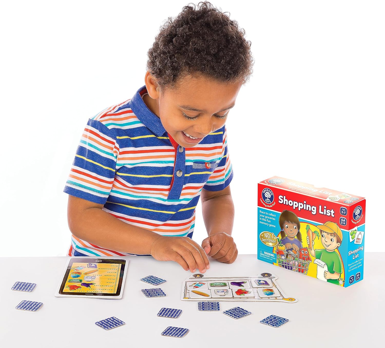 Children love memory games and “Shopping List” is one of the most enjoyable! This game is one of our best sellers is back and updated with all-new artwork. In this fun and simple memory game, players must race to be the first to fill their trolley or basket by matching all the items on their shopping list. Players take it in turns to turn over cards showing everyday items, from tomatoes to laundry soap to pizza. If they match the pictures on their shopping list, they are encouraged to say the item out loud and add it to their trolley. The winner is the first player to collect all the items on their list and fill their trolley or basket! Players have a choice of four fun shopping lists to choose from, including one on a tablet! Each list features a variety of everyday items to observe and talk about. As they play, children age 3-7 years will develop matching and memory skills and personal and social skills. This award-winning game is a firm favorite with parents and children alike, having captured imaginations for over 20 years. Includes 32 Square Shopping Cards , 4 Shopping Baskets, 4 Shopping lists, and Instruction Sheet
