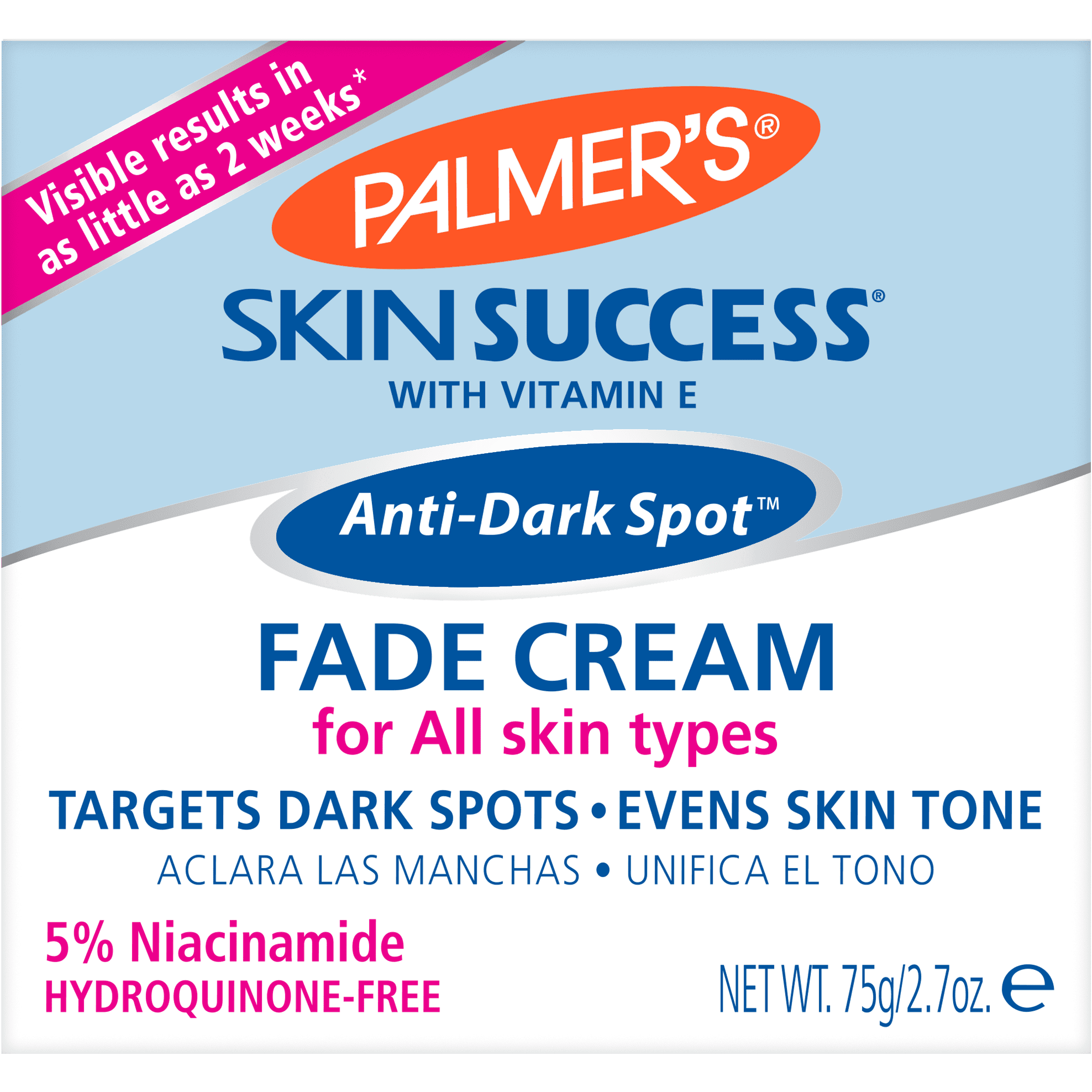 Palmer’s Skin Success Anti-Dark Spot Fade Cream 2.7 oz is a targeted skincare solution designed to address common concerns such as dark spots, age spots, uneven skin tone, and dryness. Infused with 5% Niacinamide, Retinol, Vitamin C, Vitamin E, and Songyi Mushroom Extract, this cream works to brighten the complexion, improve skin elasticity, and reduce the appearance of fine lines and wrinkles. Suitable for all skin types, it is free from hydroquinone, parabens, phthalates, sulfates, MI, and dyes. Clinical studies have shown visible improvements in skin clarity and radiance within as little as two weeks of consistent use.