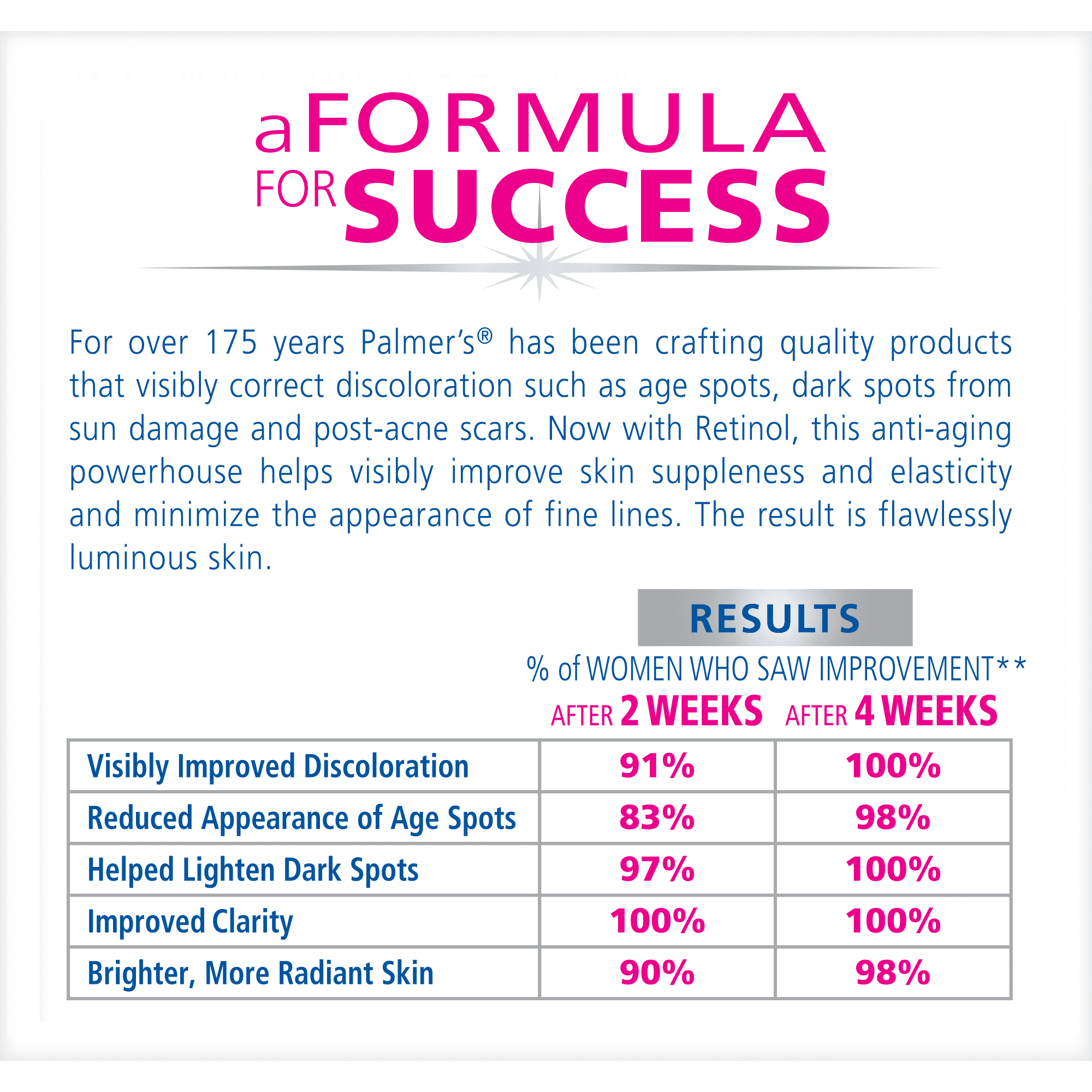 Visible results in as little as 2 weeks (may take up to 6 weeks)