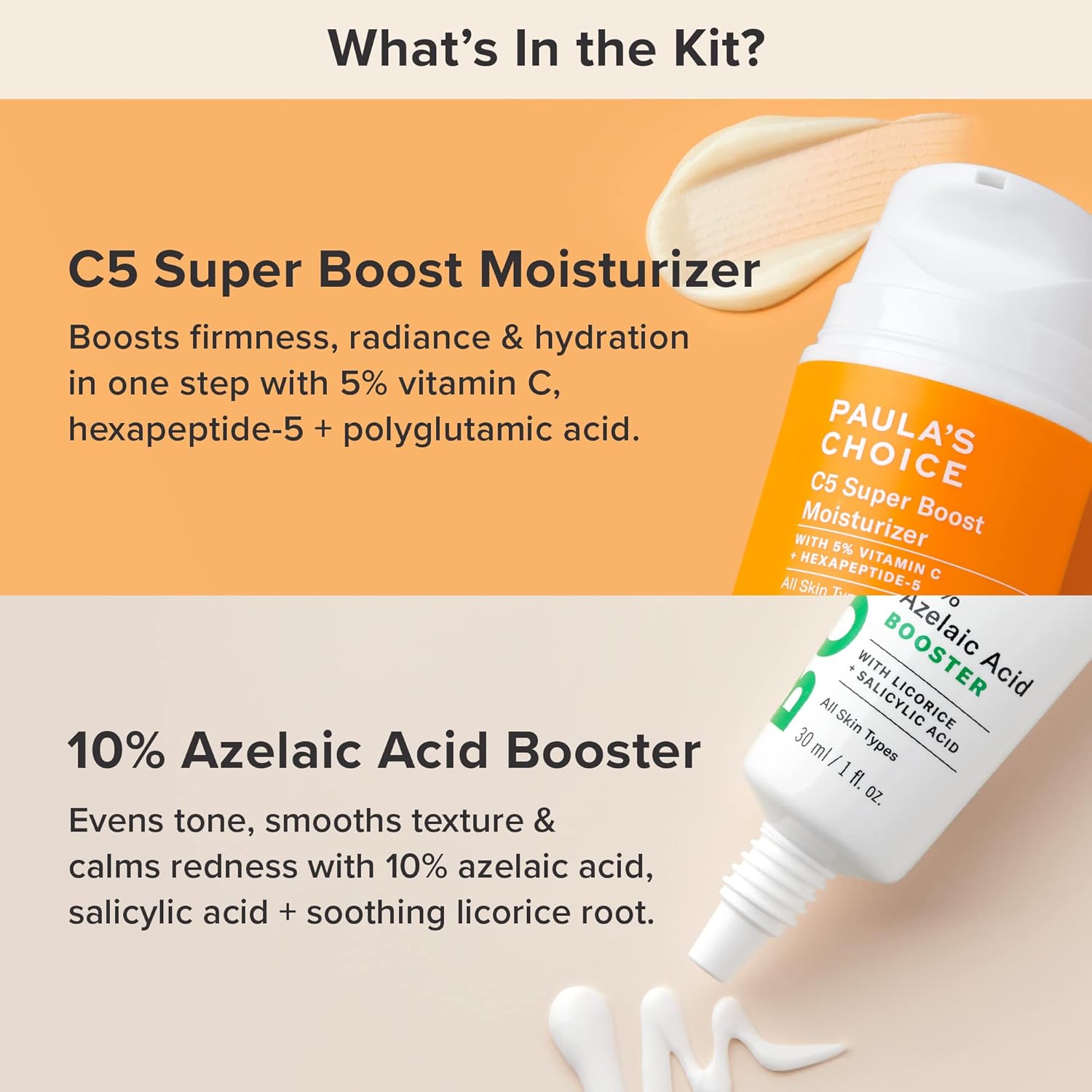 Paula’s Choice 10% Azelaic Acid Booster + C5 Super Boost 5% Vitamin C Moisturizer, for Post-Acne Discoloration & Appearance of Redness, Fragrance-Free & Paraben-Free, Set of 2