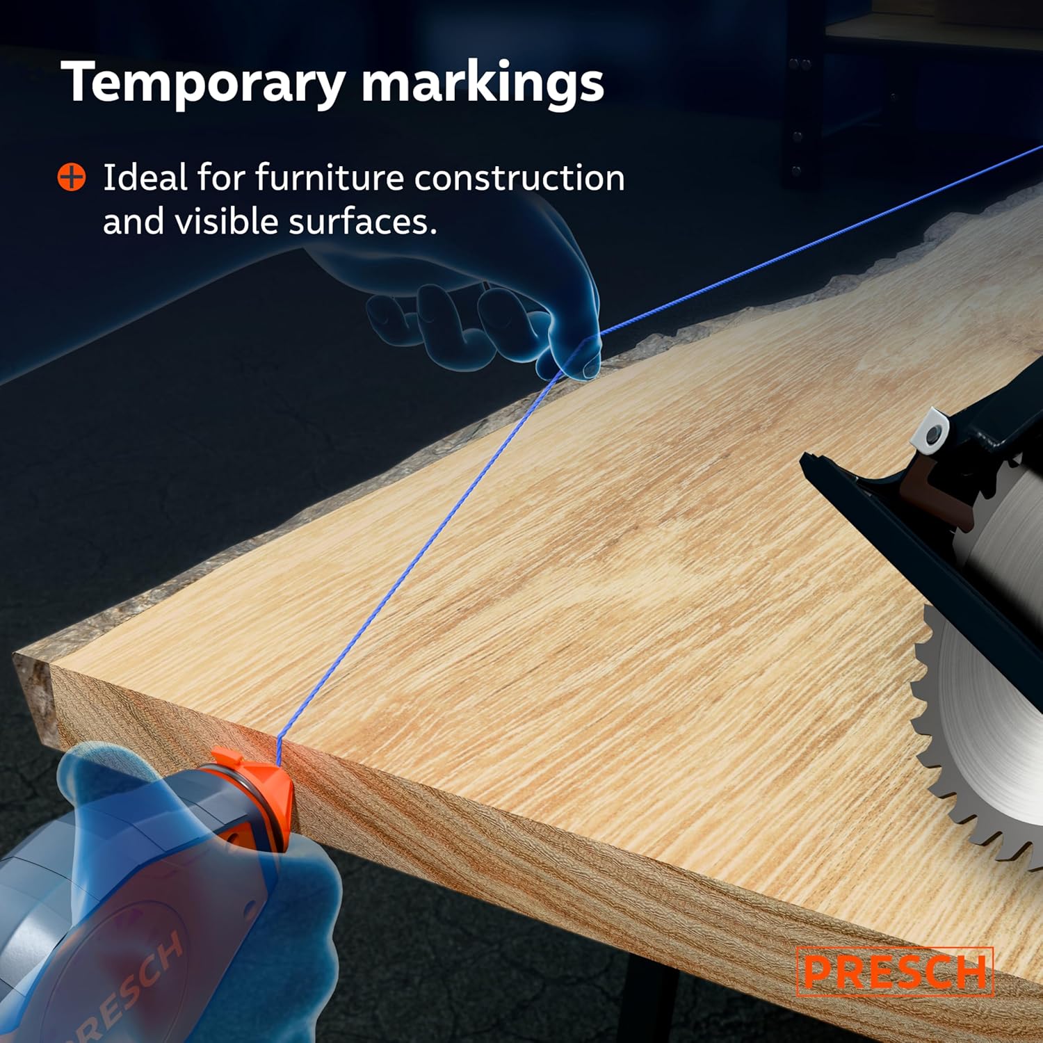 Temporary markings: The blue chalk is easy to wipe off and is ideal for furniture making and interior projects.