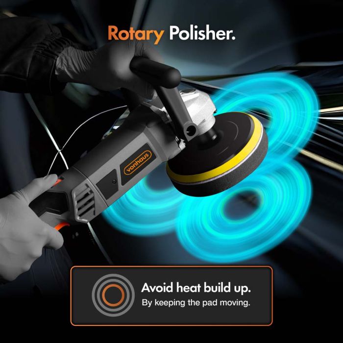 Designed with user comfort in mind, the VonHaus rotary polisher features an ergonomic D-handle. This handle provides excellent support and allows for better control, ensuring professional-quality results. Use the D-grip to apply pressure with your spare hand, enhancing precision and reducing strain during extended polishing sessions.