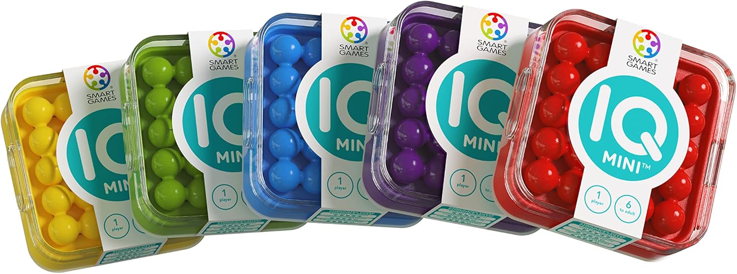 Mini Size, Maxi Challenges – A pocket-size IQ puzzle ready to take with you wherever you go! Create your own challenges by moving the blockers and fill the board with your puzzle pieces. The IQ Mini comes in 5 different bright colours! Sold individually. Price is per game and colour will be one of the five colours shown.